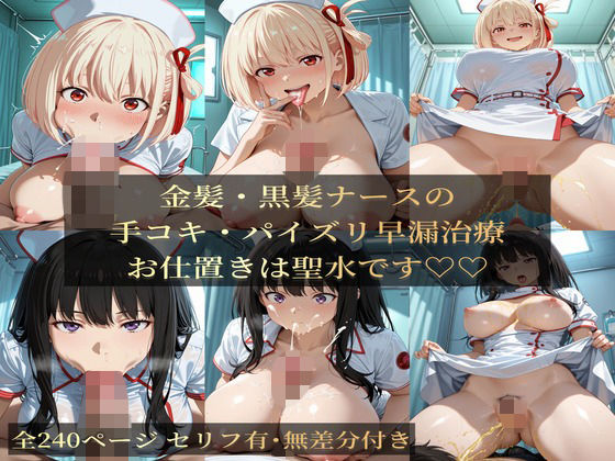 | 作 品 名 | 金髪・黒髪ナースの手コキ・ハ?イス?リ早漏治療 |